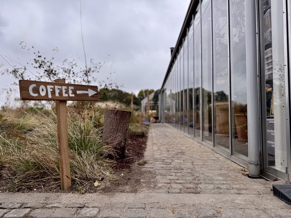 A medida que los pastizales adoptan el manto de finales de otoño, arrojando tonos verdes de color rojizo, el invernadero de Noma Projects en Copenhague, Dinamarca, refleja estos cambios. Encaramado en una franja de tierra, flanqueado por agua a ambos lados, se ha iniciado una nueva experiencia de café dentro de la cámara de vidrio. Visible a través de las ventanas, el vapor de agua sale de la chimenea de Amager Bakke, una planta de conversión de residuos en energía, como recordatorio de que la sostenibilidad adopta muchas formas. Casi puedes saborear la dualidad.
