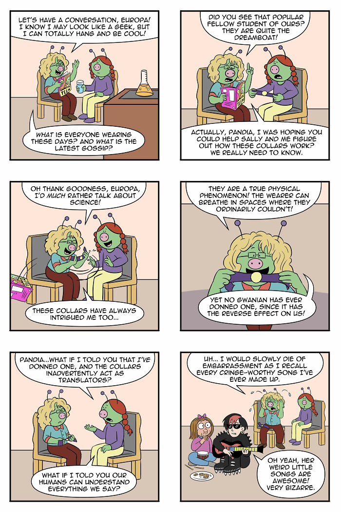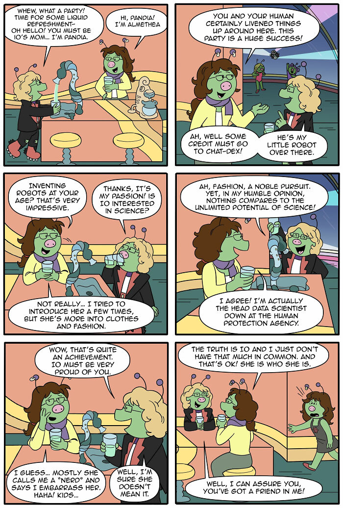 Hemos presentado los cómics de Jejo en panda aburrido antes, y el encanto no ha desaparecido. La serie todavía logra ese equilibrio acogedor y caótico: en parte ciencia ficción, en parte parte de la vida y llena de pequeños recordatorios de que los humanos son… algo extraños cuando se los ve desde afuera.