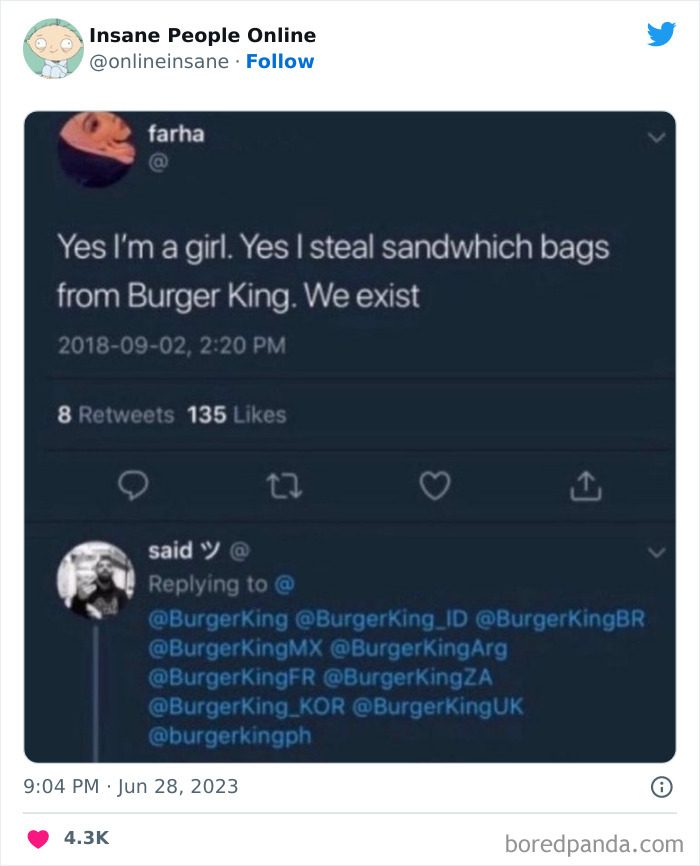 Ideada por el creador de contenido Nexqal, la cuenta de Twitter ‘Insane People Online’ documenta algunas de las cosas más extrañas que los usuarios de Internet hayan escrito y publicado en las redes sociales. Es el tipo de cosas que te hacen pensar dos veces, ya que estás fuera de tu zona de confort. Hemos recopilado algunas de las publicaciones más extrañas, presentadas en el proyecto IPO, para compartirlas con ustedes, Pandas. Desplácese hacia abajo para verlos.