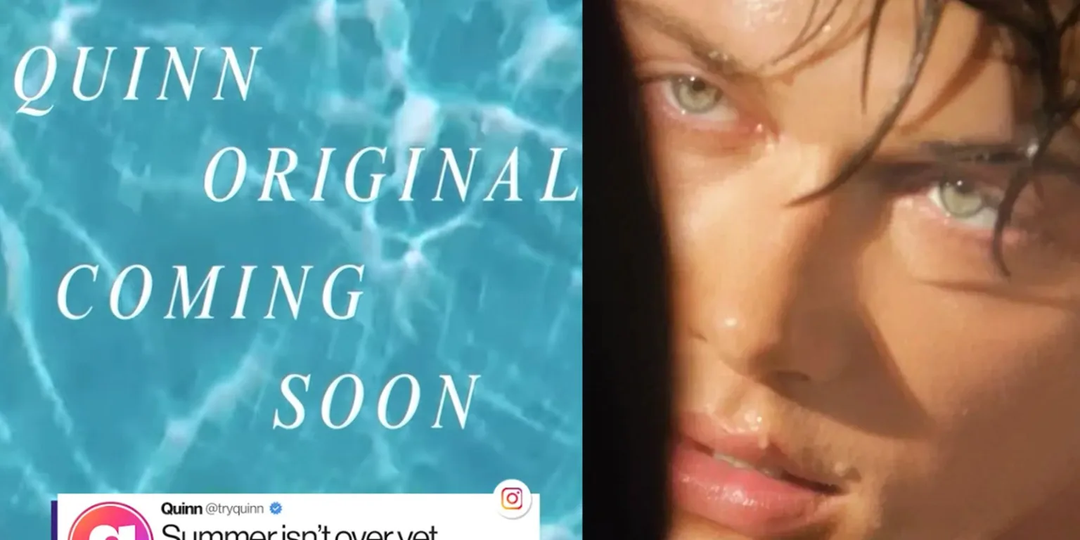 Quinn se burló de la colaboración a principios de esta semana con algunas imágenes muy reveladoras, incluidas «Quinn original próximamente» con la marca registrada El verano me volví bonito Fuente sobre un video de agua y, poco después, una silla con un melocotón y la canción ‘Wild Horses’ de The Rolling Stones, un claro guiño al episodio narrado de Conrad en la temporada final de El verano me volví bonitodonde limpia el jugo de durazno de la barbilla del vientre en una escena sorprendentemente íntima.