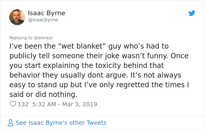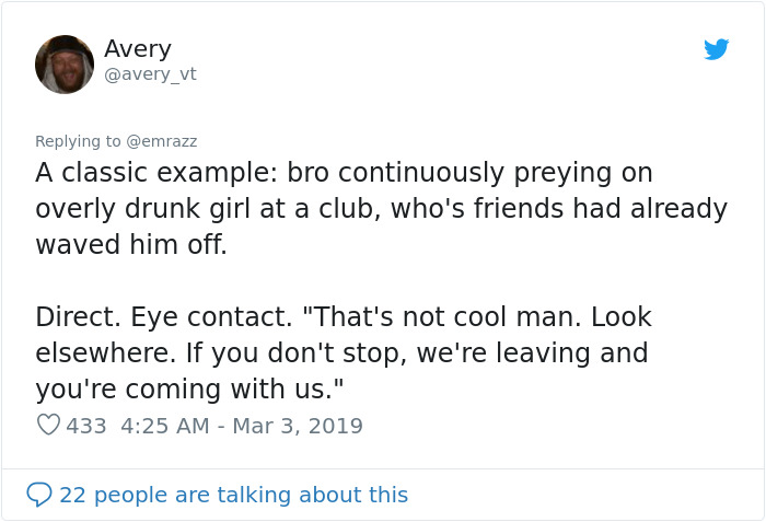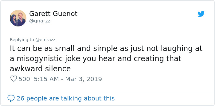 Con los medios tan centrados en los hombres malos, uno podría empezar a pensar que ya no quedan buenos. Para saber si este era el caso, el usuario de Twitter @emrazz se dirigió a sus 137.000 seguidores y pidió a todos los hombres que compartieran su experiencia al enfrentarse a la misoginia. (Imagen de portada de Facebook: Alan Kotok)