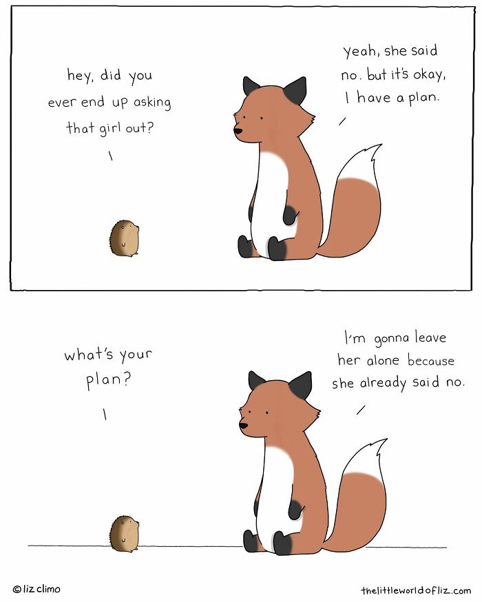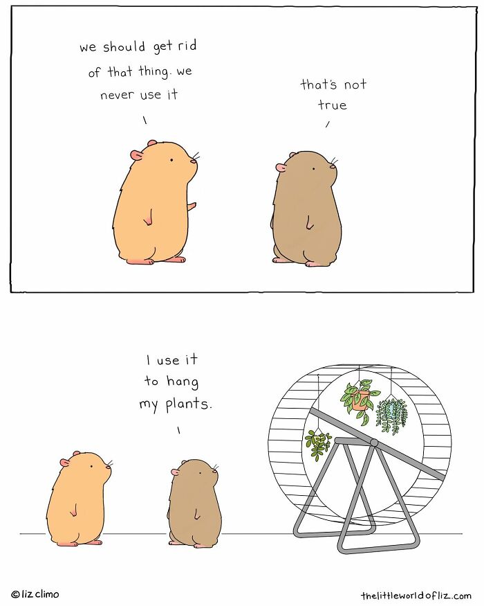 Hablando sobre el desarrollo de ideas y la creación de nuevos dibujos animados, Liz compartió que sus tiras cómicas favoritas suelen ser las que surgen de la nada. El artista dijo: «Mantengo una lista de ideas en mi teléfono y escribo una cada vez que lo tengo. Por lo general, provienen de cosas normales y cotidianas con las que siento que otras personas podrían identificarse». Climo continuó explicando que cada vez que tiene una idea, trata de imaginar cómo podría resonar en diferentes personas que ven el cómic: «¿Me estoy burlando de alguien o de algo? ¿Podría encontrar una manera de hacer esto divertido para más personas, sin dar un golpe bajo? No creo que todo el arte deba ser así, pero reconozco que esto es algo que puedo hacer, así que quiero seguir haciéndolo».