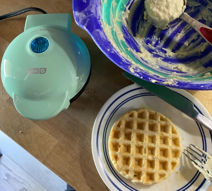 Revisar: «El producto era pequeño, como se esperaba, pero es bonito, fácil de usar y hace excelentes gofres. Mi hijo lo usó para preparar el desayuno para la familia y pudo operarlo de forma independiente. ¡Excelente para los niños!» – Sara
