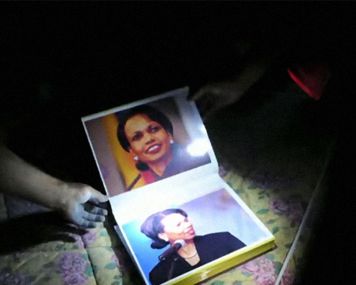 El dictador Muamar Gadafi tenía una extraña obsesión con la Secretaria de Estado estadounidense, Condoleezza Rice. Hizo que el compositor más famoso de Libia le escribiera una canción llamada «Flor negra en la Casa Blanca». Los combatientes de la oposición también encontraron un álbum de fotos lleno de fotografías de ella junto a su cama.