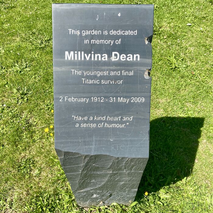 Millvina Dean fue la última y más joven superviviente del Titanic. Tenía poco más de dos meses cuando el Titanic se hundió el 14 de abril de 1912. Dean le da crédito a su padre por su supervivencia. Ella fue una de las 706 personas, en su mayoría mujeres y niños, que sobrevivieron. Su padre estuvo entre los 1.517 que murieron.