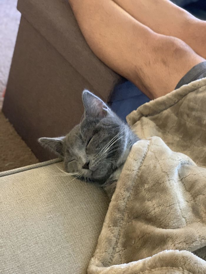 #29 Después de adoptar a nuestro primer gato, todos nos prepararon para unas primeras semanas nerviosas y tímidas, este era nuestro dulce niño 30 minutos después