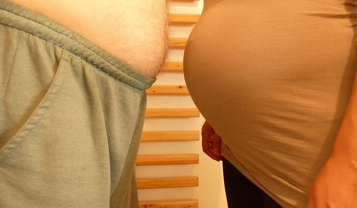 Nos hinchamos los vientres y los hacemos tocar para que los «bebés» puedan hablar entre ellos. No estoy embarazada y definitivamente no está embarazada