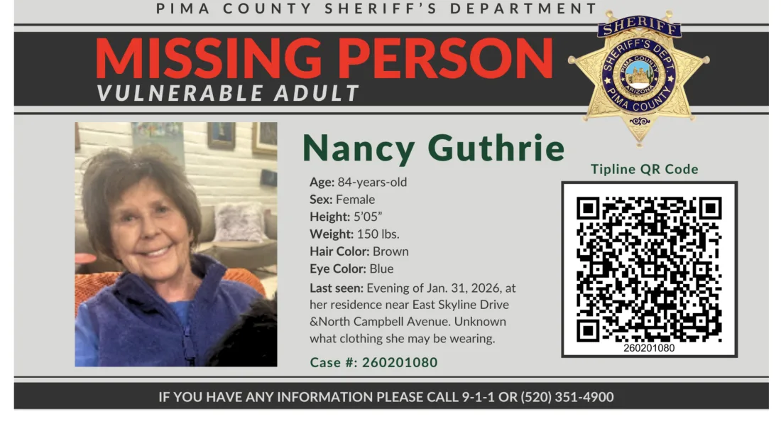 El Departamento del Sheriff del condado de Pima en Arizona emitió una alerta después de que Nancy Guthrie, madre de Hoy La copresentadora del programa Savannah Guthrie, desapareció el domingo. Si bien Nancy Guthrie tiene problemas de movilidad, el sheriff Chris Nanos dijo que «está en su sano juicio. Este no es un caso relacionado con la demencia».