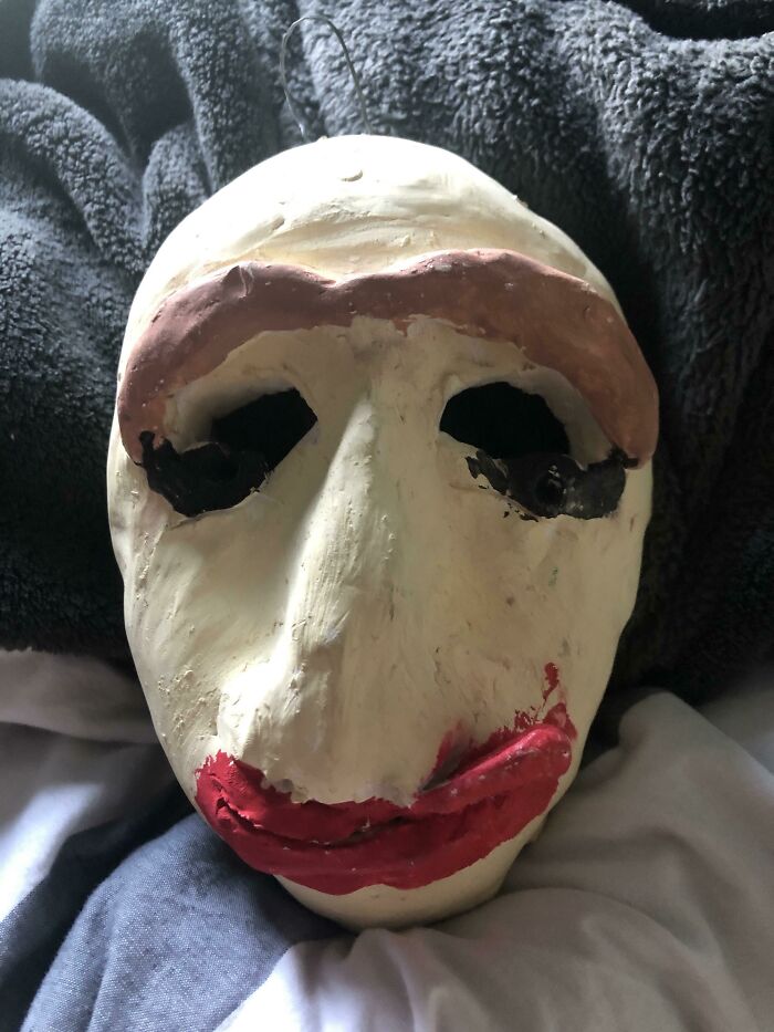 # 3 Nido de avispas que se formó alrededor de la cara de una estatua de madera que quedó en un cobertizo
