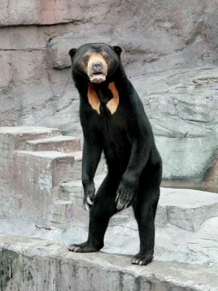# 27 Este es un oso solar. Puede que no sea aterrador para la mayoría de las personas, pero estremece imaginar a esta criatura corriendo hacia ti con dos piernas (como un humano) por la noche.