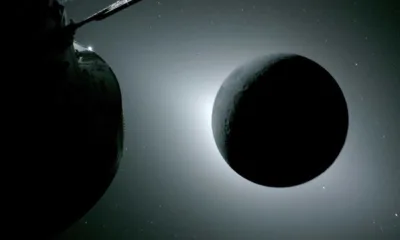 The moon, seen here backlit by the sun during a solar eclipse on Monday, is photographed by one of the cameras on the Orion spacecraft’s solar...
