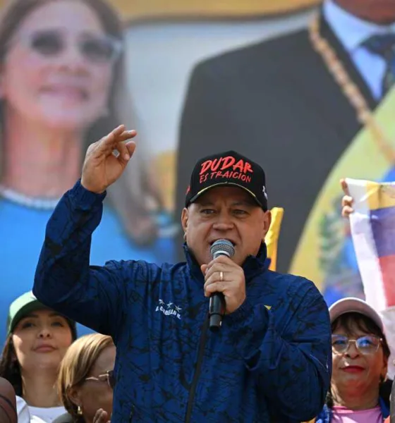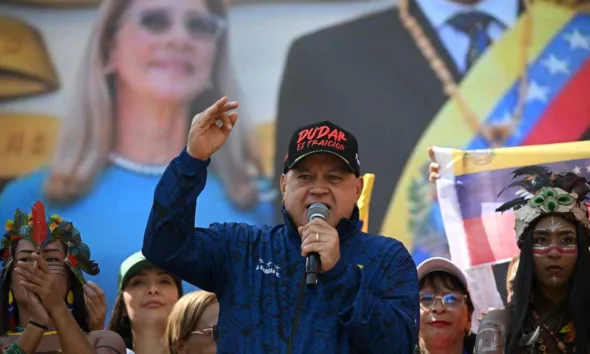 El Ministro del Interior de Venezuela, Diosdado Cabello, pronuncia un discurso durante una manifestación de mujeres en apoyo del derrocado...