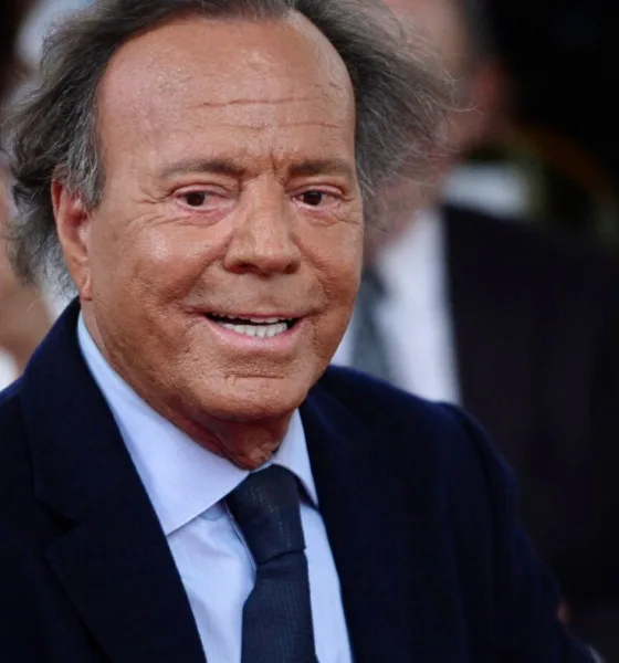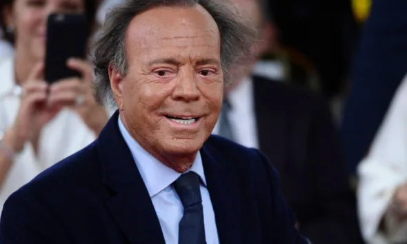 El cantante español Julio Iglesias sonríe durante la ceremonia de inauguración de su estrella en el Paseo de la Fama...