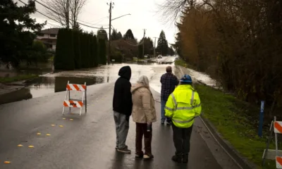 Los vecinos observan cómo Gages Slough se desborda e inunda una calle en Burlington, Washington, el viernes. Megan granjero/KUOW ocultar título alternar título Megan granjero/KUOW Esta...