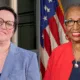 Cathy Harris (izquierda), miembro de la Junta de Protección de Sistemas de Mérito, y Gwynne Wilcox (derecha), miembro de la Junta Nacional de Relaciones Laborales, fueron...