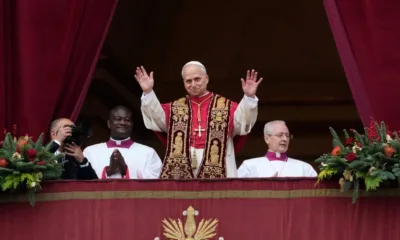 El Papa León XIV saluda el jueves después de entregar la bendición navideña Urbi et Orbi (en latín, «a la...