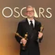Paul Thomas Anderson celebra sus premios Oscar al mejor guión adaptado, mejor director y mejor película por Una batalla tras otra. Mike Coppola/Getty Images ocultar título...