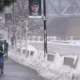 Los fanáticos caminan por calles nevadas antes de un partido de hockey de la NHL entre los Minnesota Wild y los Toronto Maple Leafs, el domingo...