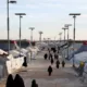Mujeres y niños, familiares de presuntos combatientes del Estado Islámico, se sientan cerca de un muro dentro del campamento de al-Hol en la región desértica de...