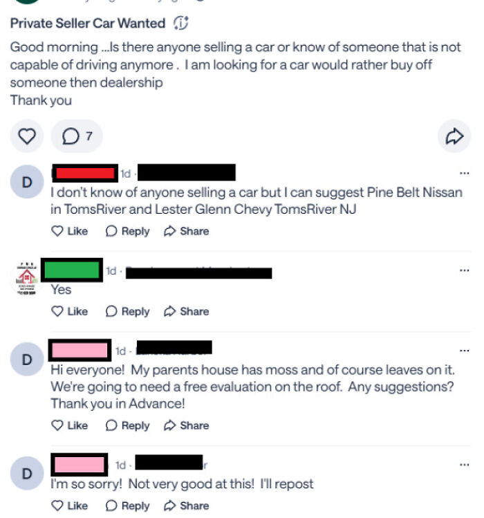 Puedes encontrar vecinos preguntando sobre patos que parecen sospechosos o alguien que ofrece servicios de RCP a domicilio… incluso hay una persona que publicó consejos aleatorios sobre el estreñimiento por algún motivo.