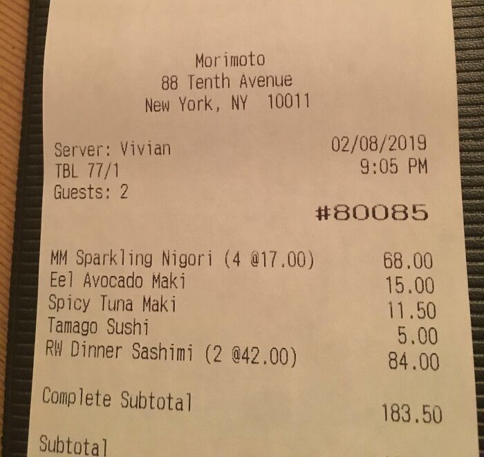 #8 El recibo de mi restaurante del otro día. Se dieron choca esos cinco
