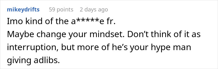 Entonces, un internauta dejó de contar una historia en medio de ella cuando su marido los interrumpió.