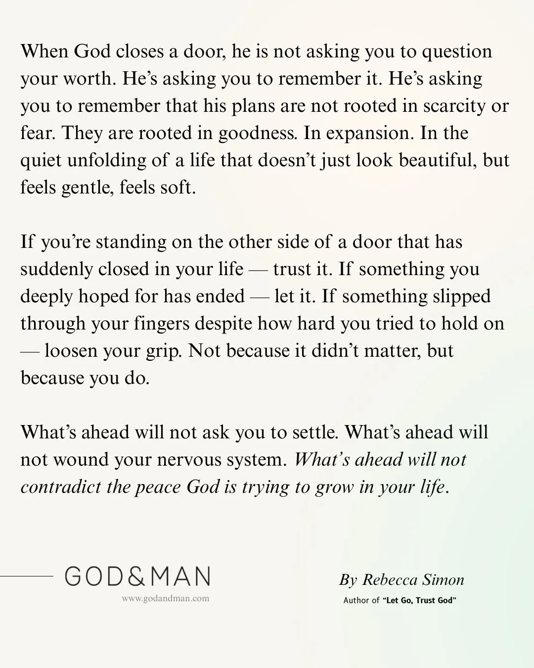 Encontrar la paz comienza con entregar nuestras preocupaciones al universo y confiar en que la guía de Dios nos encontrará en medio de nuestra incertidumbre. Autor del best-seller de Encontrar a Dios cada díaRebecca Simon, nos recuerda que debemos confiar en el tiempo de Dios, abrazar la paciencia y apoyarnos en Su presencia en cada etapa de la vida.