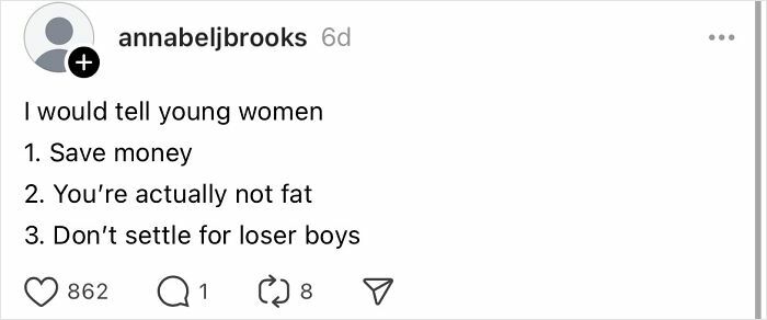 La internauta April (@a.badu_) se volvió viral recientemente en Threads, la aplicación de Instagram donde todos pueden compartir conversaciones públicas, después de pedir a mujeres de 30 años o más que revelaran sus principales errores en la vida. El objetivo de April era ayudar a las mujeres jóvenes para que no cometieran los errores de otras personas. Encontrarás consejos útiles de todos a medida que te desplazas hacia abajo.